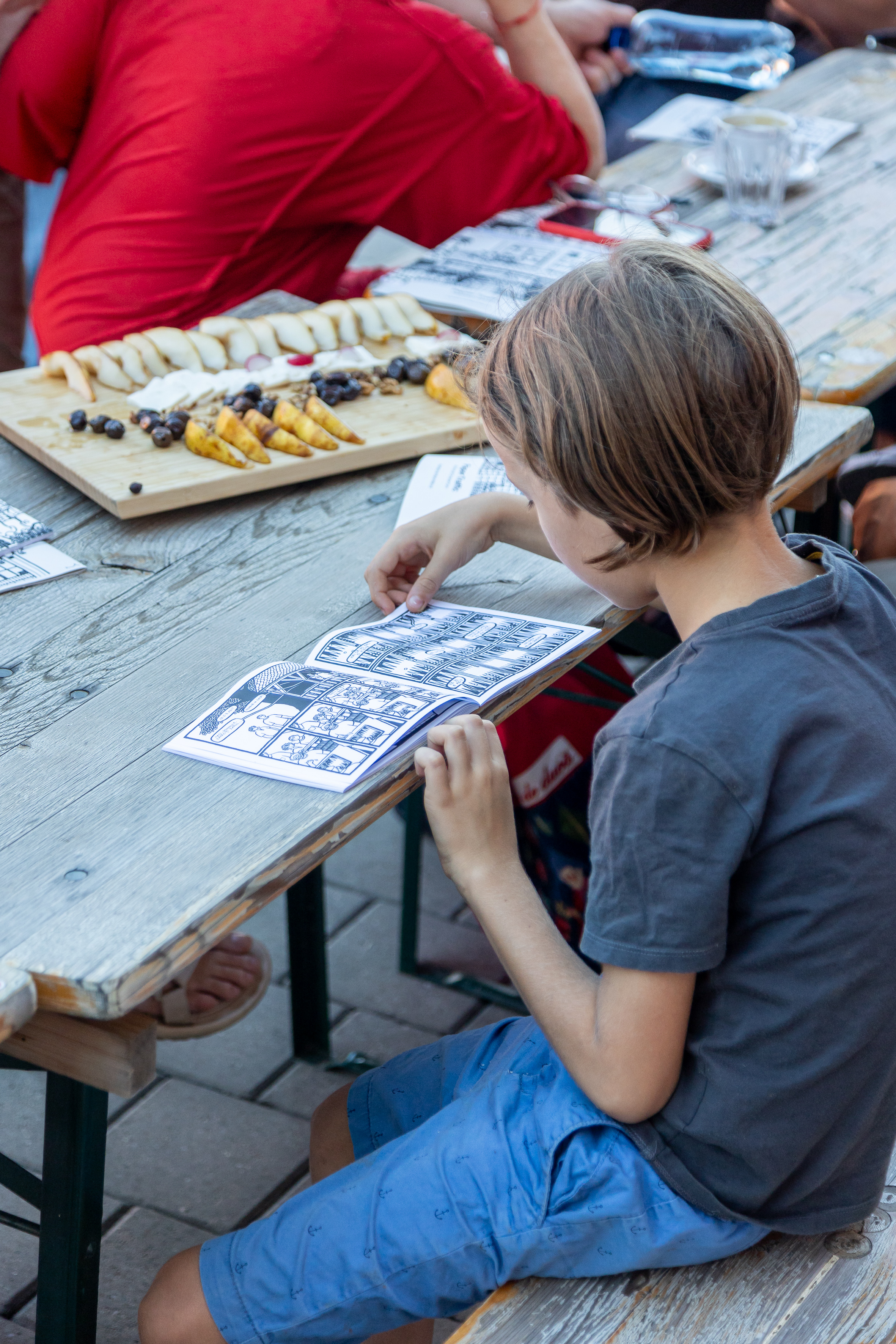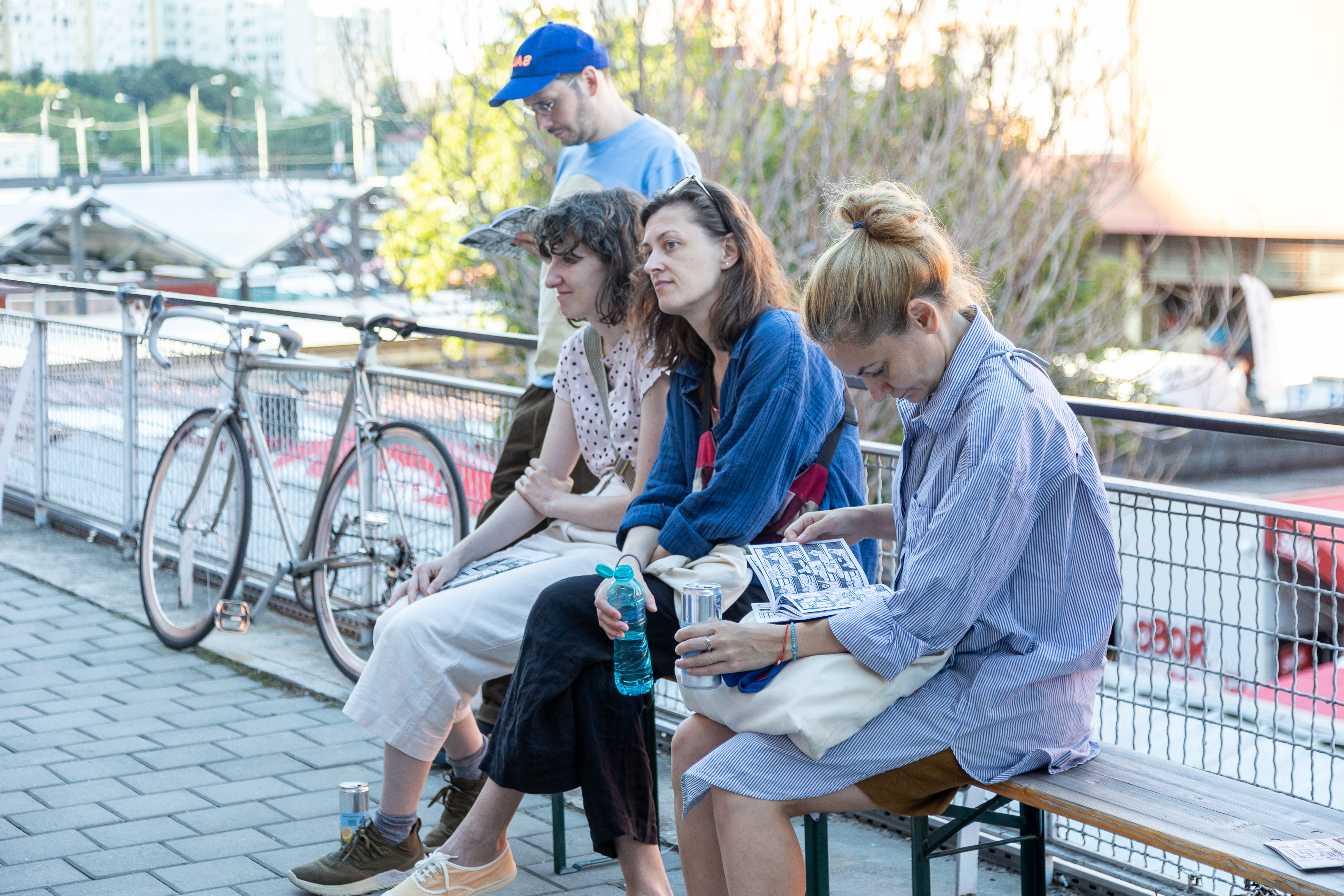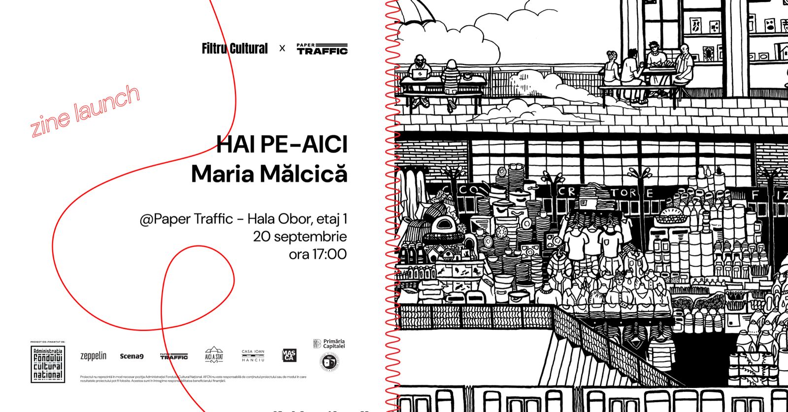Evenimentul a debutat cu lansarea benzii desenate despre zona Pieței Obor – HAI PE-AICI, realizată de Maria Mălcică. Autoarea a explorat cartierul prin ochii a doi prieteni, mai degrabă flaneuri decât simpli clienți.