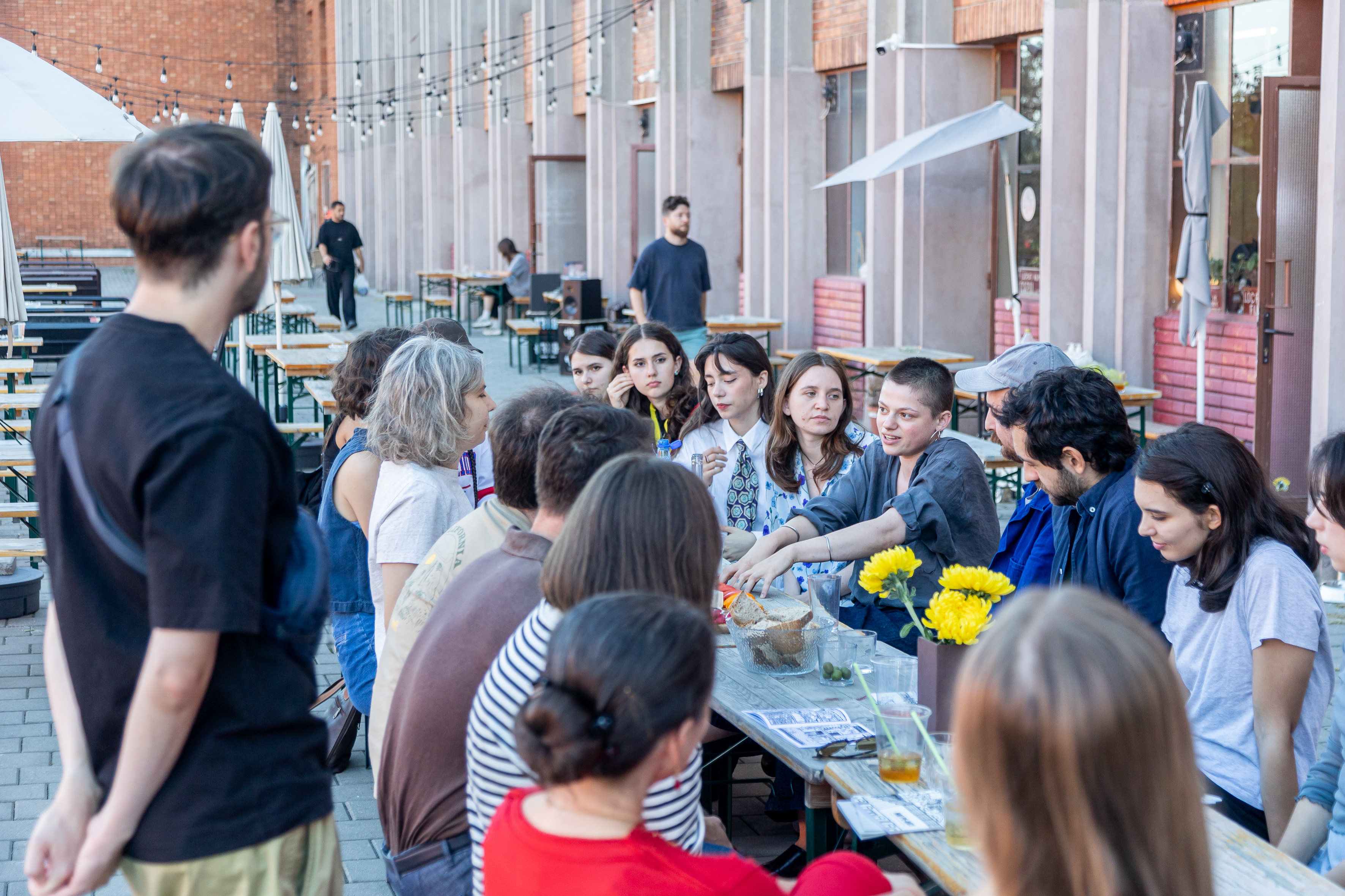 După ce am primit o perspectivă din interior de la doi dintre artiștii care lucrează la Atelierele Scânteia, ne-am orientat atenția către exteriorul acestui reper al orașului. Am avut plăcerea să o avem ca invitat pe arh. Irina Tulbure, care ne-a vorbit despre numeroasele rescrieri ale zonei în care se află Casa Presei Libere, de la Luna Bucureștilor, complexul expozițional Romexpo și fostul Pavilion EREN, până la cartierul Jiului.